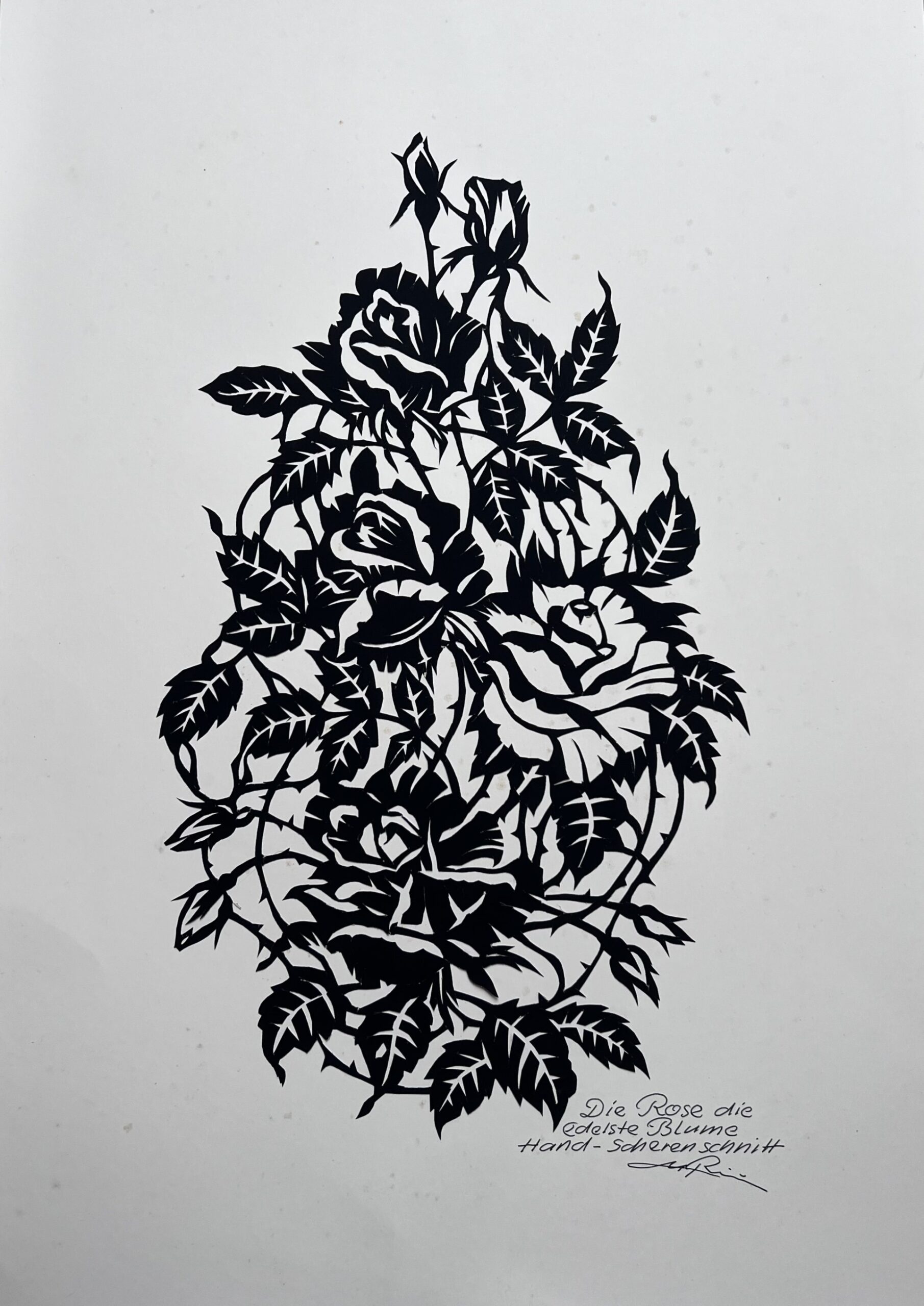Scherenschnitt, signiert, bezeichnet mit Titel und „Handscherenschnitt“